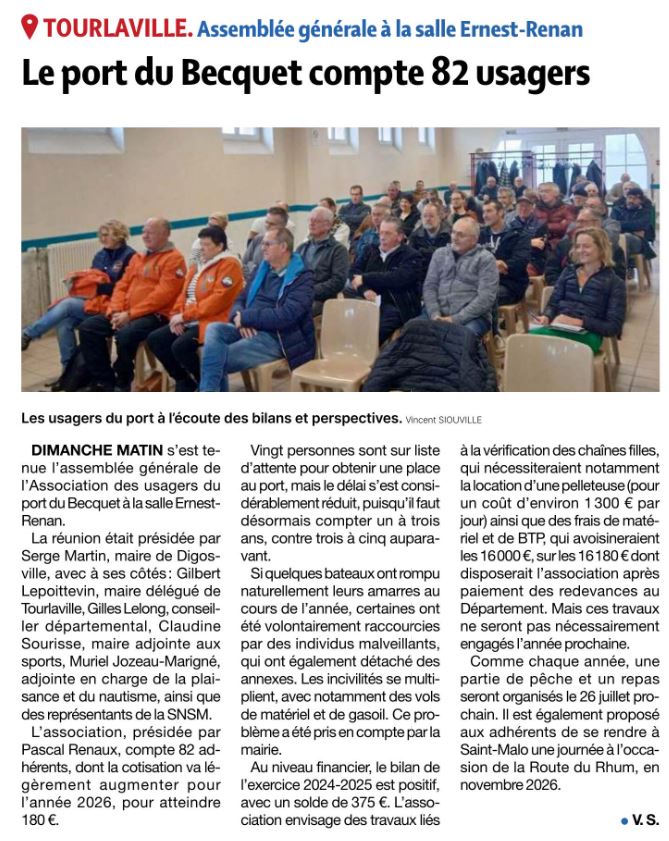 Article de la presse de la Manche du 27 novembre 2025 - Assemblée Générale des usagers du port du Becquet