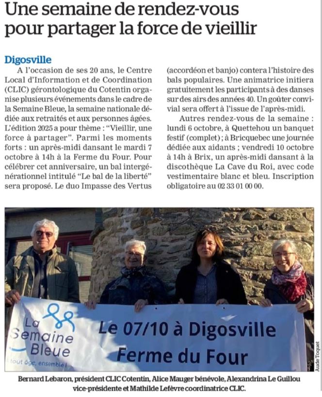Article de la Manche Libre du 2 octobre 2025 - Une semaine de rendez-vous pour partager la force de vieillir