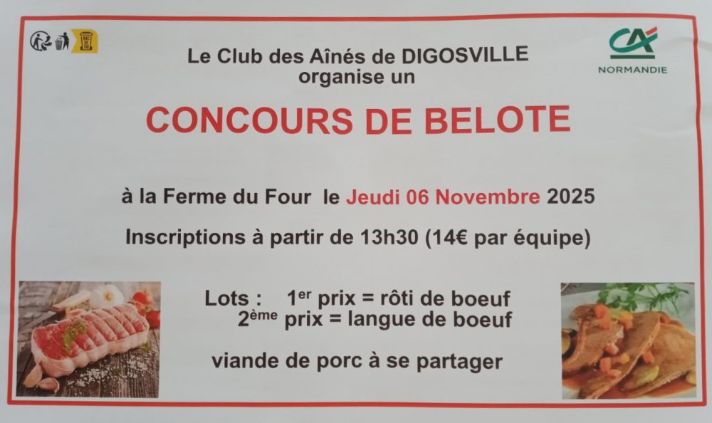 14€ par équipe , inscriptions à partir de 13h30 à la salle de la Ferme du Four à Digosville