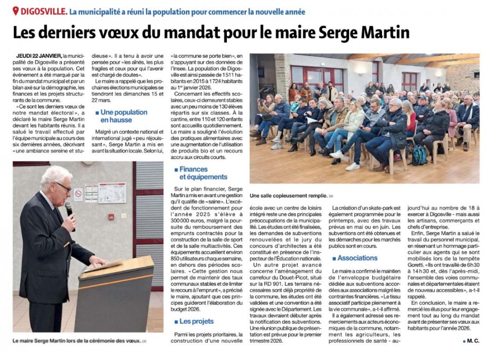 Article de la Presse de la Manche du 31 janvier 2026 - Les derniers vœux du mandate de M.MARTIN Maire de Digosville