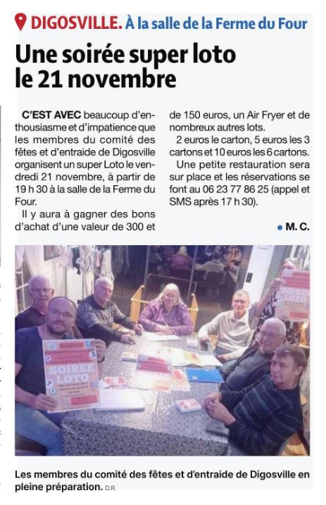 Article de la Presse de la Manche du 5 novembre 2025 - Loto du comité des fêtes le 21 novembre