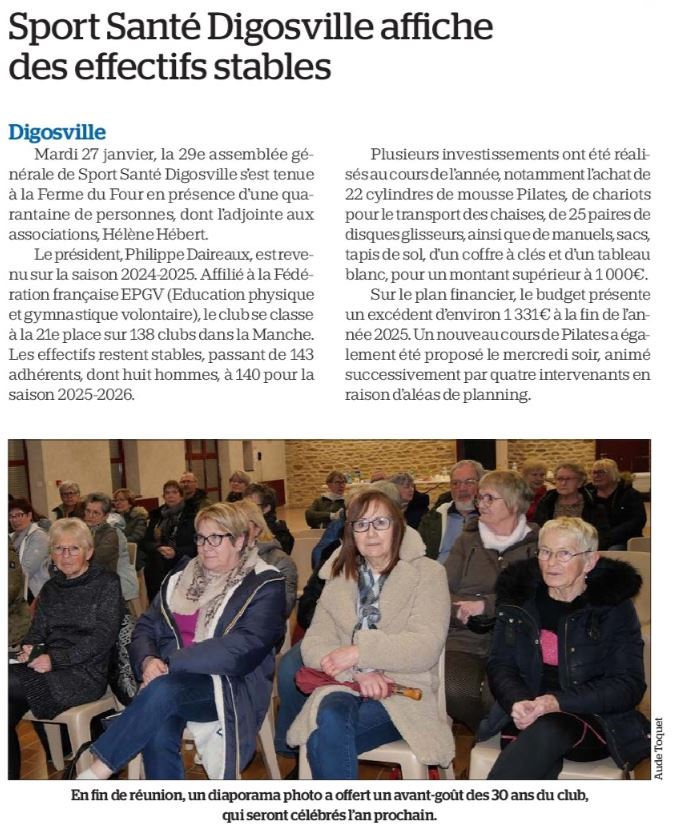 Article de la Manche Libre du 29 janvier 2026 - le Sport Santé Digosville affiche des effectifs stables