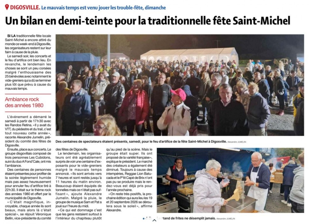Article de la Presse de la Manche du 23 septembre 2025 - Un bilan en demi-teinte pour la traditionnelle fête Saint-Michel