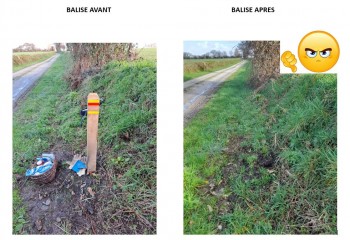Encore du sabotage sur nos balises de chemin de randonnée