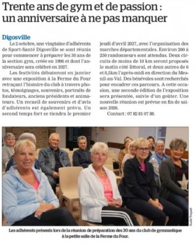 Article de la manche Libre du 9 octobre 2025 - 30 ans de gym et de passion...